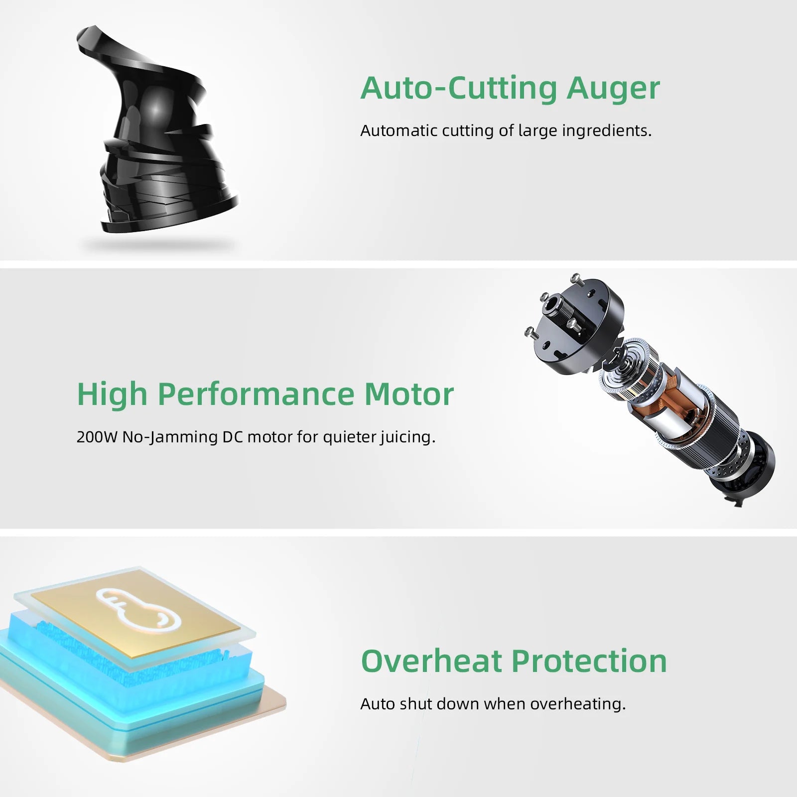 200W High-Torque Motor – Provides strong, consistent squeezing power with less clogging, even on dense produce.